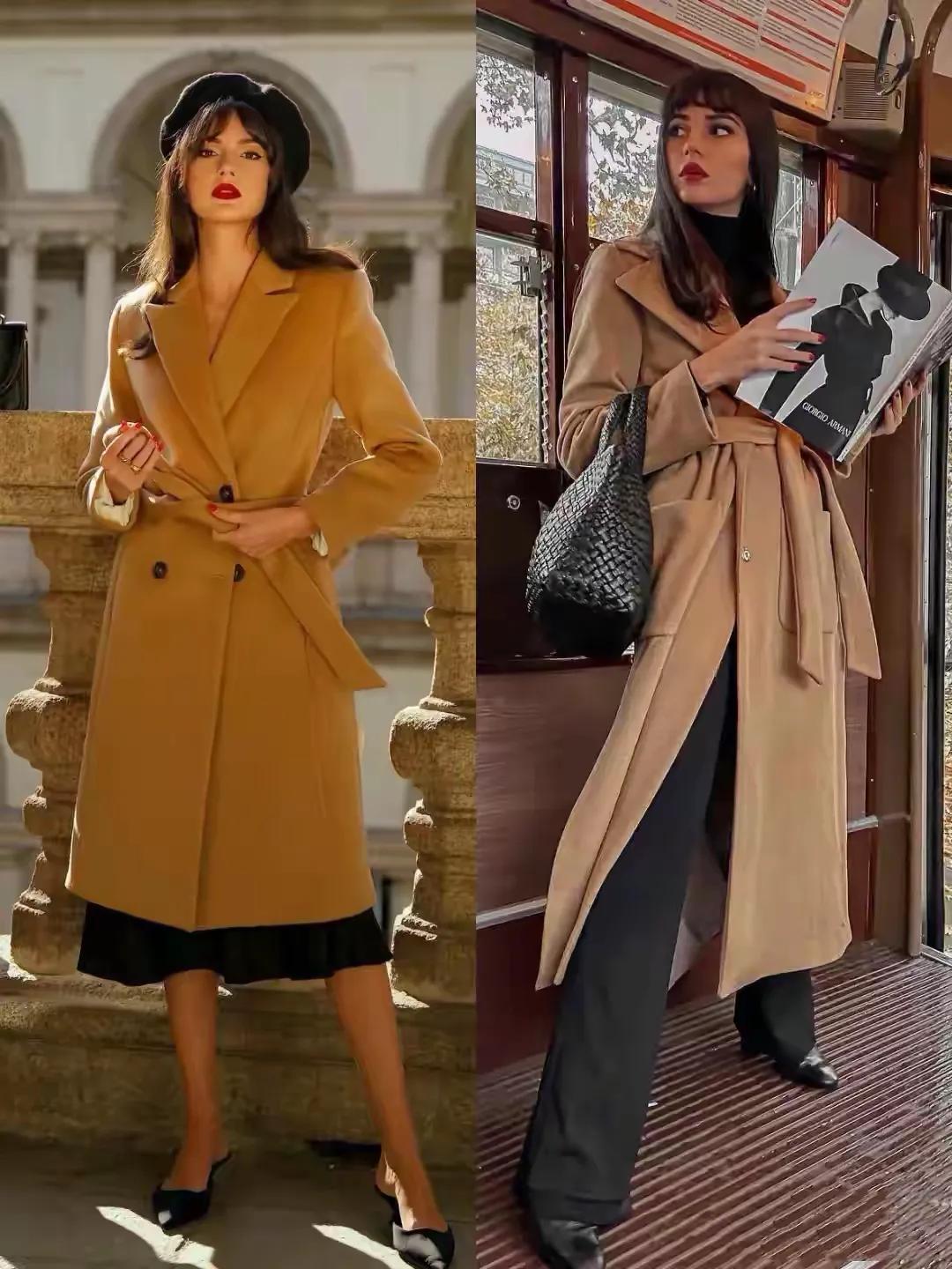 寒冷的冬天还是要抛弃沉闷的黑色大衣吧,选择驼色大衣更合适你,穿在身上温暖又高级,可以搭配阔腿裤,让你显瘦利落,也可以搭配裙子,使得穿搭者优雅得体,可以让咱们从路人变成女神。
