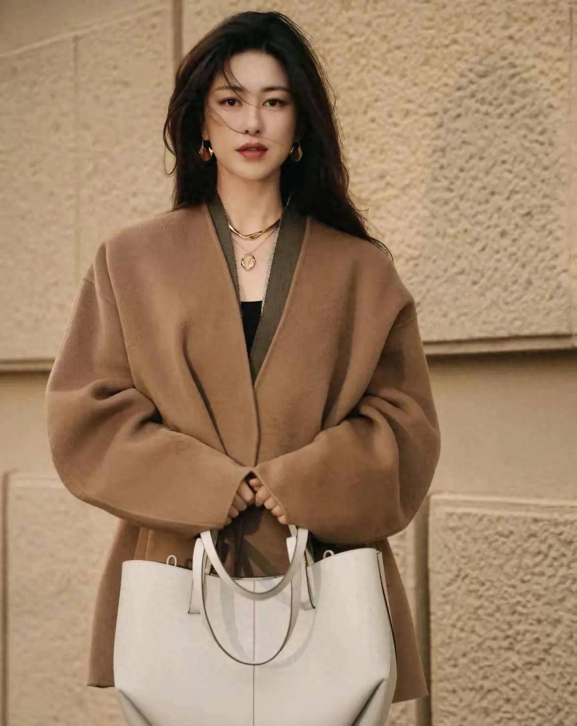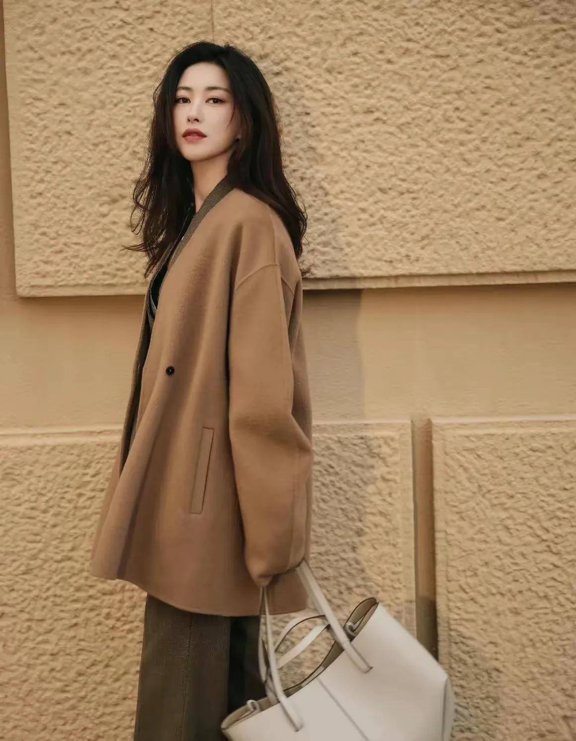 驼色大衣女明星“朱珠”都爱穿,因为驼色的衣服比较经典,穿在身上又有高级感,而且还能修饰肤色,让人看起来更有精气神。