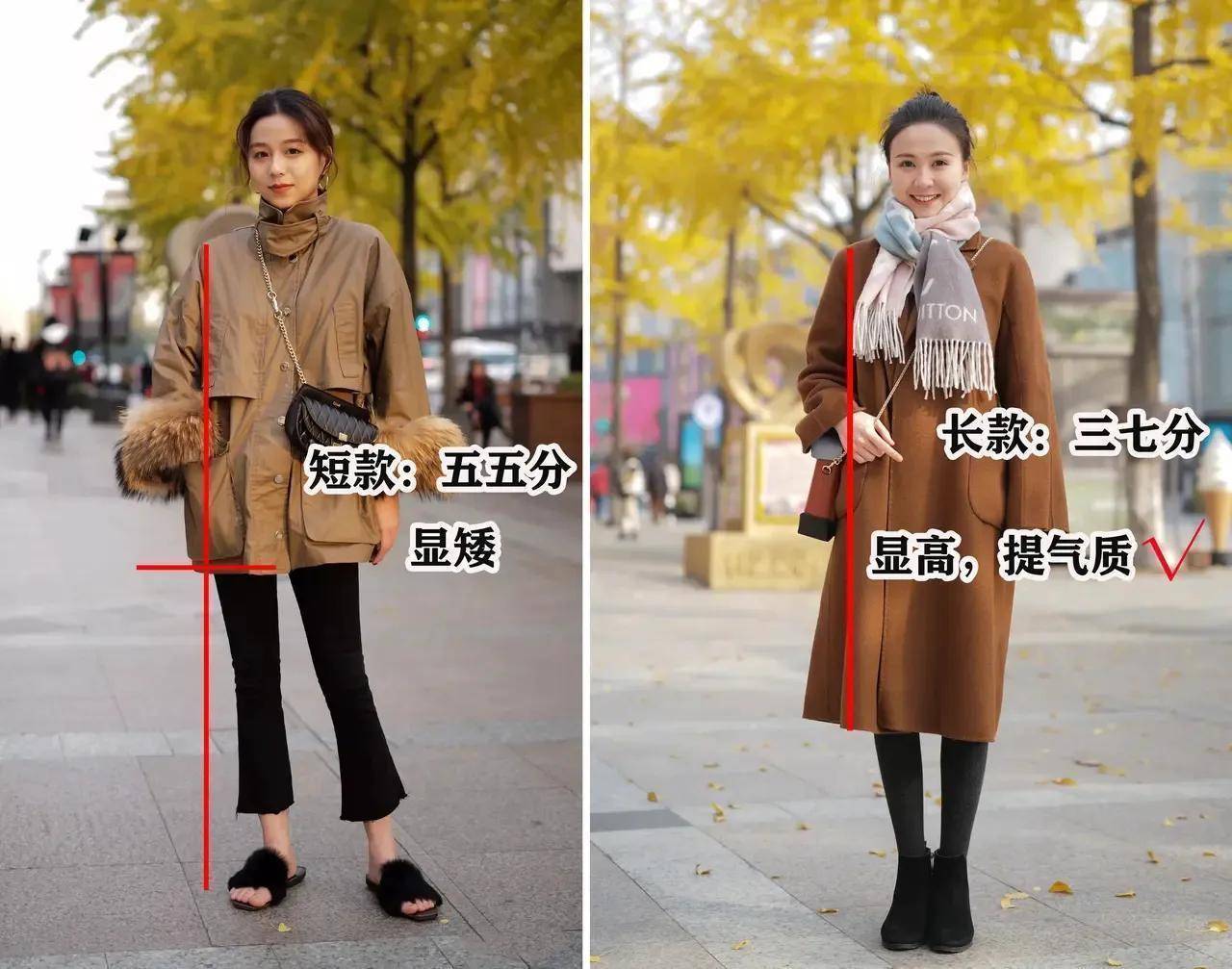 也不是说当你穿上驼色的衣服就能让你自己变得很高贵。如果不会选择衣服款式、长度去优化我们的身材,不小心就让自己形成五五分的身材比例,呈现视觉效果很显矮。