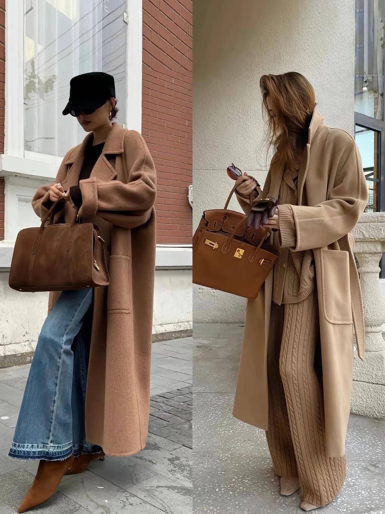 当然少不了就是一款好看的包包,不过包包的大小要适中,不能过大,太大会有喧宾夺主的可能。颜色也尽量选择黑色、驼色、大地色系、纯色系的款式来搭配,驼色大衣才不会有违和感,让你的造型时尚感直接拉满。如果你也喜欢穿驼色大衣,不妨尝试一番,你也可以变成时髦精。