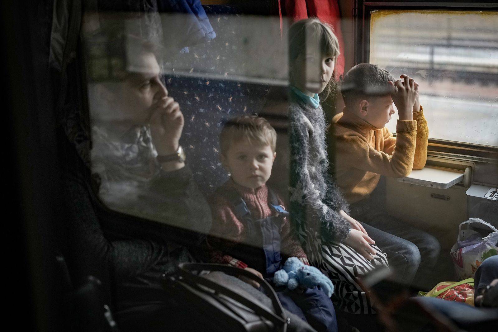 2022年3月16日,乌克兰切普,难民乘坐火车撤离到斯洛伐克。来源:视觉中国