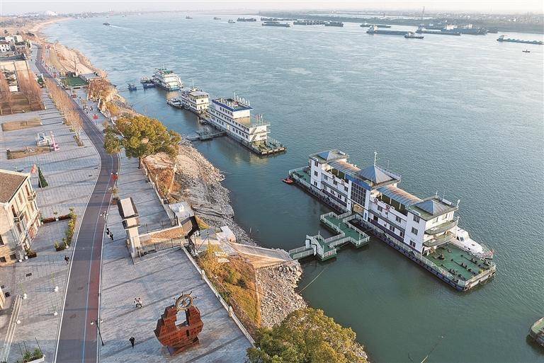 近年来,湖北省荆州市持续推动历史文化街区修复改造,依托沙市码头的悠久历史和工业文化,打造集文化展示、滨江观光、运动健身等多种业态为一体的沙市洋码头文创园,成为人们休闲娱乐的好去处。图为1月7日拍摄的位于长江边的洋码头文创园。新华社记者杜子璇摄(杜子璇)